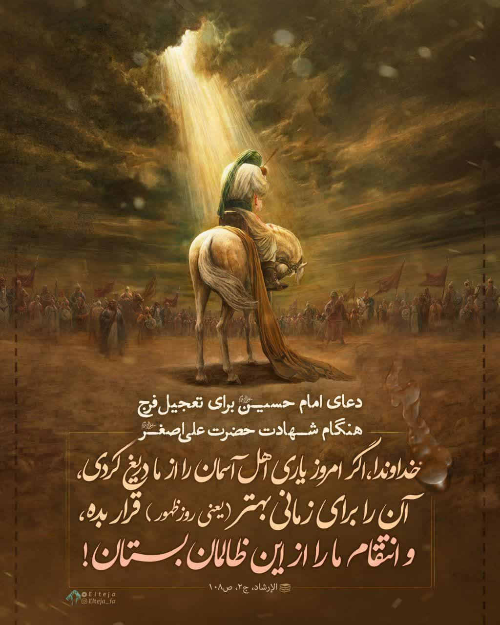 🏴 دعای امام حسین علیهالسلام در ظهر عاشورا، هنگام شهادت حضرت علی اصغر علیه السلام: